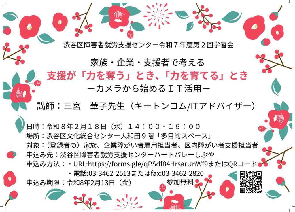 令和7年度第2回渋谷区障害者就労支援センター学習会を開催します。